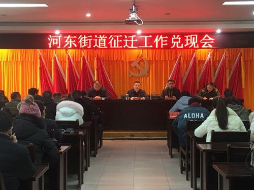 1月15日,河东街道召开征迁工作兑现会,会议由河东街道党工委副书记张广海主持,全体机关干部,社区两委,征迁项目负责同志参会。