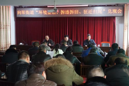元月19日,向阳街道围绕“环境整治、拆违拆旧、征迁扫尾”等工作进行了严肃的调度和兑现。参加现场调度和兑现会的有街道党政班子成员、点长、各社区书记、征迁项目的部分工作人员和物业小区部分管理人员。
