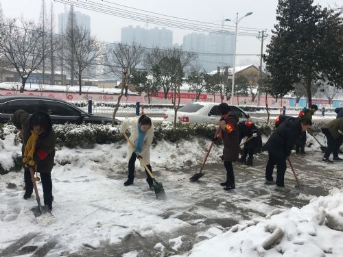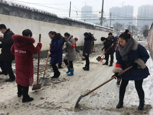 1月28日,雪停天霁,阜城美不胜收。但积雪初融,也使得道路变得湿滑,给群众出行带来诸多不便,存在着安全隐患。向阳街道立即组织全体机关工作人员,利用周日行人较少的有利时机,开展除冰雪保畅通活动。