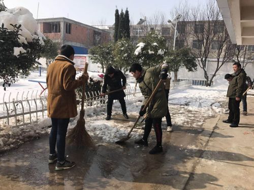 在司法所工作人员带领下,社区服刑人员带着铁锹、扫帚一起分工合作,顶着寒风,将镇政府院内道路、篮球场等群众来往人多的积雪彻底清除,保障过往车辆和办事群众的交通安全。