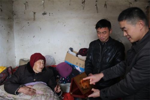 2月7日,徐鑫带领街道党政办、民政办工作人员来到新华街道辖区内的任海村和吕寨村,对辖区两名百岁老人送上街道党工委、办事处新春佳节的祝福。