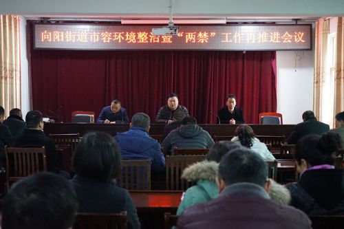 2月9日上午,向阳街道召开市容环境整治暨“两禁”工作再推进会议,会议由街道党工委书记主持,街道全体机关工作人员、市容中队参加了会议。