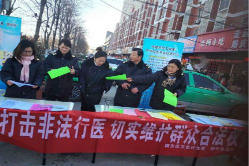 根据市卫计委监督执法局统一安排,2月12日,颍东区卫生监督所在汽车东站开展“接您回家为您健康保驾护航”宣传活动,活动现场设立宣传咨询台,宣传条幅,发放宣传资料200余份,宣传普及了卫生法律法规知识、打击非法行医远离“黑诊所”、打击非法医疗美容、生活饮用水安全常识,食品安全常识等,活动取得了圆满成功。