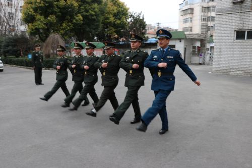 颍东人武部根据省军区和军分区统一部署,组织开展了“学条令、学法规、正秩序”活动。3月6日上午,该部组织全体干部职工进行队列训练,这是“两学一正”活动的一项内容。