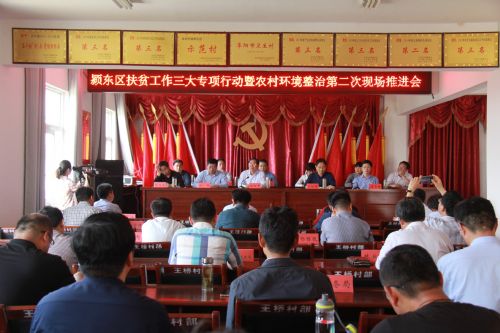 4月29日,颍东区召开本年度扶贫工作三大专项行动暨农村环境整治第二次现场推进会。区领导顾恒中、宁险峰、刘伟、顾中伟、程传雷、芮磊、钱黎丽、王飞虎、沙学珍、马达、袁亮,10个乡镇街道党委书记、分管负责人,区直有关单位主要负责人参加会议。