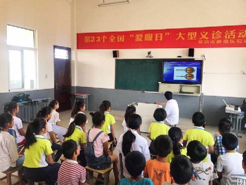 儿童是未来的希望,在电子产品泛滥的今天,儿童近视发生率在逐年攀升,少年儿童近视防控问题已然成为当前社会面临的最严峻的问题之一,需要全社会的关注。2018年6月6日上午,阜阳市肿瘤医院来我镇东徐小学进行爱眼日大型义诊活动,为少年儿童举行了眼健康公益讲座。肿瘤医院眼科专家给同学们上了一堂生动活泼、丰富多彩的眼健康知识讲座,图文并茂的为同学们介绍了近视的危害、如何正确爱眼护眼、如何正确做眼保健操以及一些常见眼病的知识,同学们也积极参与互动,咨询了许多眼健康相关知识。肿瘤眼科专家们又为该校学生进行视力筛查,开展眼健康教育,帮助眼疾患者儿童得到及时、有效的治疗和救助。