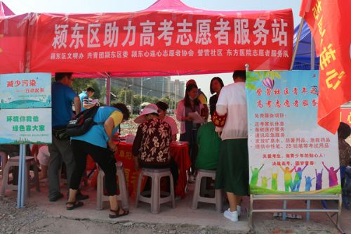 2018年6月7日,又迎来了一年一度的高考。为进一步弘扬“奉献、友爱、互助、进步”的志愿服务精神,给广大考生营造舒心安静的考试环境,河东街道訾营社区联合阜阳市心连心志愿者协会在辖区城郊中学考点设立了“助力高考爱心服务站”,为在该考点参加高考的莘莘学子们献爱心,全力助考。
