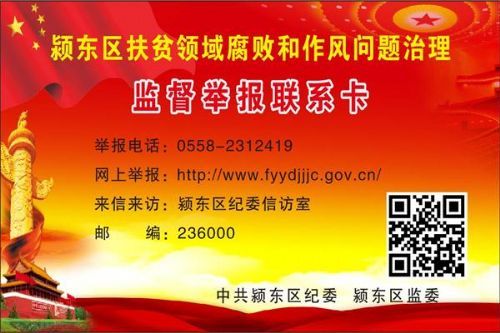 近日,颍东区纪委监委印制了6000余份“扶贫领域腐败和作风问题治理监督举报联系卡”发放到基层群众手中,并要求各乡镇街道纪委在所有村居(社区)张贴《扶贫领域执纪监督监察监督举报提示函》,设立举报箱,进一步拓宽扶贫领域监督举报渠道,拉近纪检监察机关与基层群众的距离。