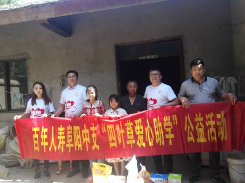 6月10日,百年人寿安徽省阜阳中心支行副总经理姜峰一行深入阜阳颍东区枣庄镇宁桥村开展“四叶草爱心助学”公益活动。
