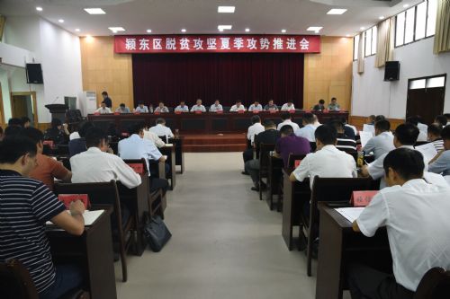 7月10日,颍东区召开脱贫攻坚夏季攻势推进会。市政协副主席、区委书记顾恒中出席会议并讲话,区委副书记、区长张银军主持会议。区委副书记王显明传达了省委组织部和省扶贫办联合举办的脱贫攻坚培训班会议精神。