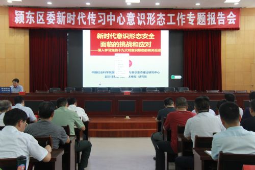 7月15日,颍东区举办新时代传习中心意识形态工作专题报告会,邀请中国社会科学院国家文化安全与意识形态建设研究中心副主任兼秘书长朱继东,为全区党员领导干部作了题为《新时代意识形态安全面临的挑战和应对》的专题报告。市政协副主席、区委书记顾恒中主持会议。