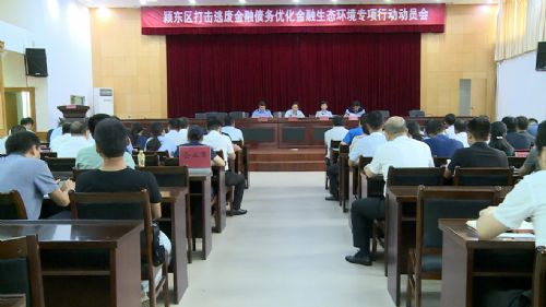 会议宣读了《颍东区打击逃废金融债务优化金融生态环境专项行动方案》;传达了李平书记、孙正东市长关于全市打击逃废金融债务优化金融生态环境专项行动的批示精神;颍东农商行、区投融资管理中心分别作了表态发言。