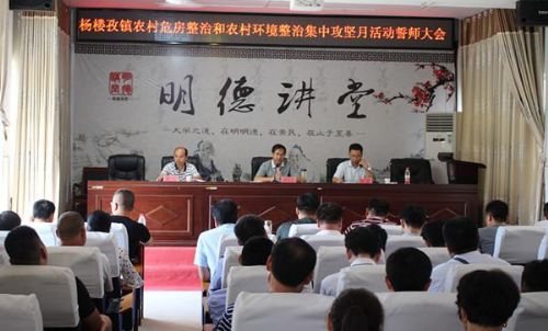 8月29日,杨楼孜镇召开农村危房整治和农村环境整治集中攻坚月活动誓师大会,区委常委、区政府副区长程传雷到会指导。会议由杨楼孜镇党委书记张虎主持。区级驻村工作专班、全体镇村干部、卫生院、派出所人员等近200人参加誓师大会。