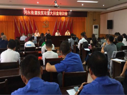 9月18日河东街道召开脱贫攻坚大排查培训会,会议由河东街道党工委书记张伟主持,机关全体帮扶责任人和涉及脱贫攻坚任务的社区全体两委参加会议。