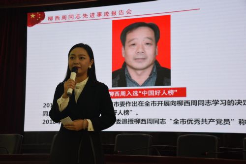 报告会上,四名报告团成员分别以“柳西周的最后十八天”“帮乡亲脱贫,咱不干谁干”“有困难找西周”“柳西周的愧疚”为主题,以讲述、追忆的形式,从不同角度,饱含深情地讲述了柳西周32年来扎根基层、心系群众、无私奉献的感人事迹。报告人难掩悲痛,几度哽咽,声情并茂的讲述和饱含深情的短片令听众为之动容,参会人员认真专注听取报告,会场不时响起热烈掌声。