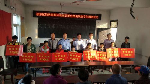 10月17日上午,区税务局副局长杨华魁一行到袁寨镇袁寨居委会、江店社区开展第五个扶贫日“认捐认领”活动,为袁寨居委会、江店社区的贫困家庭留守儿童捐赠了5.2余万元助学资金助力脱贫攻坚,帮助贫困家庭学生和留守儿童走出困境早日成材。