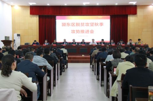 10月19日,颍东区召开脱贫攻坚秋季攻势推进会。市政协副主席、颍东区委书记顾恒中,区委副书记、区长张银军出席会议并讲话,区委副书记王显明主持会议。