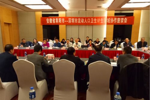 11月14日,阜阳市-深圳市流动人口卫生计生区域协作座谈会在阜阳市召开。安徽省计生协业务处长李锐,安徽省卫计委基层指导处副调研员梁军,深圳市人口基金会理事长洪旺全,深圳市卫计委计管处调研员洪墨、孟光辉,深圳市计生协秘书长黄颖峰,阜阳市卫计委党组成员、调研员李皖跃,阜阳市计生协秘书长赵中龄,颍东区委常委、宣传部长钱黎丽出席。深圳市各区卫计局、计生协及有关街道、颍东区卫计委、正午镇、安徽省驻深圳市流动人口卫生计生区域协作服务站(计生协联合会)等有关单位负责同志参加。