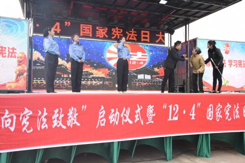 12月4日,在我国第十八个法制宣传日、第五个国家宪法日到来之际,首个“宪法宣传周”期间,颍东区举办了“不负时代使命建设法治颍东—向宪法致敬”启动仪式暨“12.4”国家宪法日大型广场法治演出法律咨询活动,弘扬法制精神,号召全社会牢固树立并自觉践行社会主义法制理念。区委常委、政法委书记宁险峰,区政府副区长马达,区政协副主席、工商联主席朱允秀出席活动。