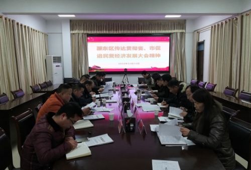 12月12日下午,颍东区召开会议传达贯彻省、市促进民营经济发展大会精神。会议由区政府党组成员、区金融办主任丁朝阳主持,区经信委、区工商联、区发改委、开发区管委会等有关负责同志参加会议。