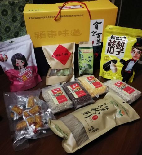 据悉,去年9月,全国政协机关在机关驻地专门举办了一场扶贫定点帮扶县区特色扶贫产品展销会,颍东区展示的特色产品很受欢迎,短短一个多小时就售罄,全国政协机关扶贫办的领导表示,要采取电商方式,帮助颍东区把特色产品走进北京市场。这次线上订购的“颍东味道”包括红薯丁、桑叶茶、玉米糁、高粱米、麦仁、土面、小马哥零食口袋、猪蹄、牛腱、牛板筋、豇豆、红豆等20多个种类,是由颍东区正午镇、新乌江镇、冉庙乡等8个乡镇的农民专业合作社和开发区的食品生产企业生产出来的绿色食品、原生态食品,经组合包装成1487份“颍东味道”盒,每份市场销售价200元。