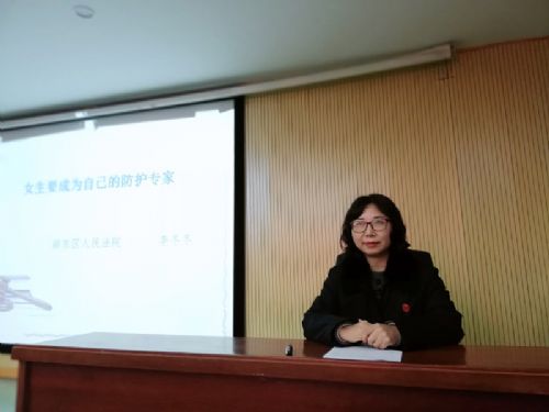 少年法庭法官李冬冬来到阜阳市第十六中学,为该校七、八年级近