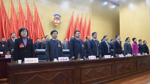 最后,全体起立,大会在庄严雄壮的国歌声中闭幕。