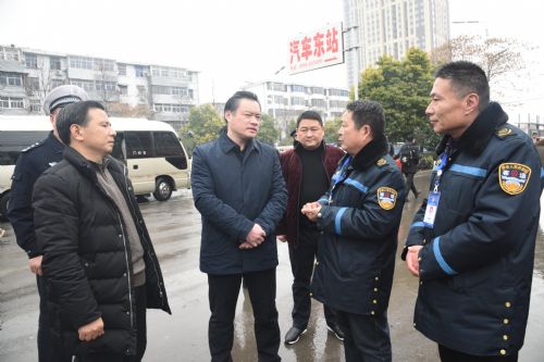张银军一行先后来到汽车东站、农公班车站、火车站广场等人流密集区域,实地查看春运期间道路交通安全状况,并对存在问题进行现场解决。