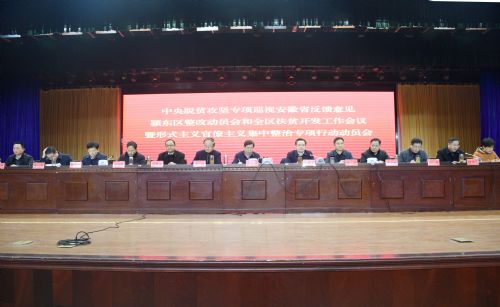 2月13日,中央脱贫攻坚专项巡视安徽省反馈意见颍东区整改动员会和全区扶贫开发工作会议暨形式主义官僚主义集中整治专项行动动员会召开。市政协副主席、区委书记顾恒中出席会议并讲话,区委副书记、区长张银军主持会议。