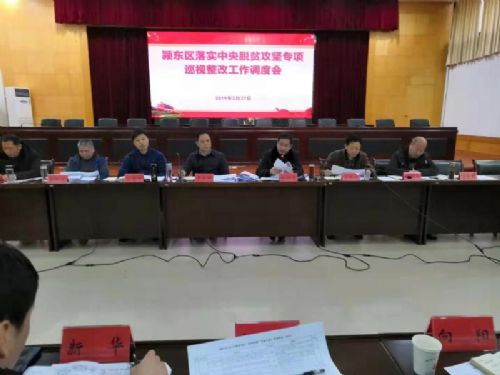 会议通报了中央脱贫攻坚专项巡视安徽省反馈意见颍东区整改工作领导组织情况,进一步明确整改工作一办五组(即:领导小组办公室、综合组、政策指导组、调度协调组、整改督导组、宣传信息组)的工作职能。