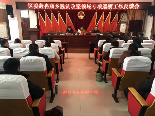 2月26日下午,区委赴冉庙乡脱贫攻坚领域专项巡察反馈会召开,区委常委、宣传部长钱黎丽出席会议并讲话。冉庙乡班子成员,站所长,扶贫办全体成员,驻村工作队全体成员,被巡察村兰堂村、梧樟村、冉庙村全体村两委干部参加会议。