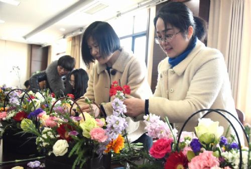 3月7日,颍东区委办、区政办工会、区妇联和安建地产精心组织策划了一场别开生面的政企联谊“三·八”妇女节活动,40余名女干部职工齐聚花的海洋,跟随老师学习插花技艺。
