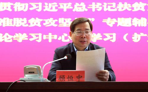 3月10日,颍东区召开“学习贯彻习近平总书记扶贫重要论述,坚决打赢精准脱贫攻坚战”专题辅导报告会暨区委理论中心组学习(扩大)会议。市政协副主席、区委书记顾恒中主持会议并讲话。省扶贫办考核评估处程衍生同志应邀作专题辅导报告。
