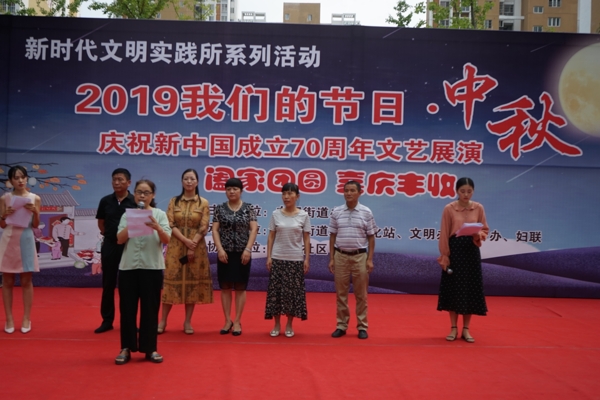 9月10日下午,一曲《祝福你我的祖国》嘹亮响起,向阳街道办事处新时代文明实践所系列活动——“2019年我们的节日·中秋暨庆祝新中国成立70周年文艺展演”在东平社区和谐佳苑小区隆重举行,15个精彩的文艺节目,把向阳街道办事处2019年度迎中秋庆国庆系列活动拉向了高潮。