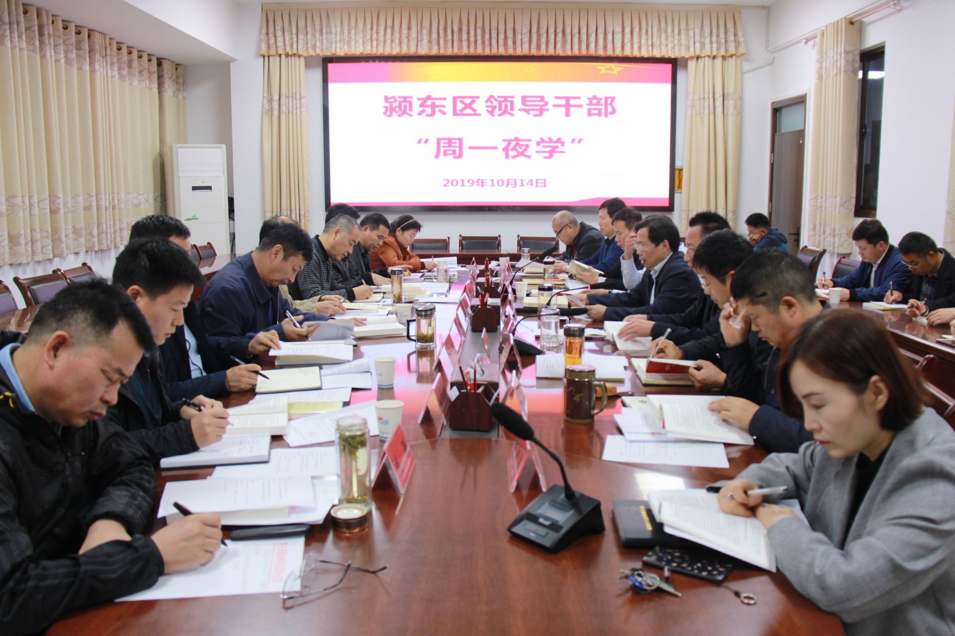 10月14日晚,颍东区领导干部开启首次“周一夜学”,区四大班子负责人,区法院院长、区检察院检察长,区直部门主要负责人分6组开展学习研讨,市政协副主席、区委书记顾恒中,区委副书记、区长张银军等区领导分别主持6个小组的学习讨论。