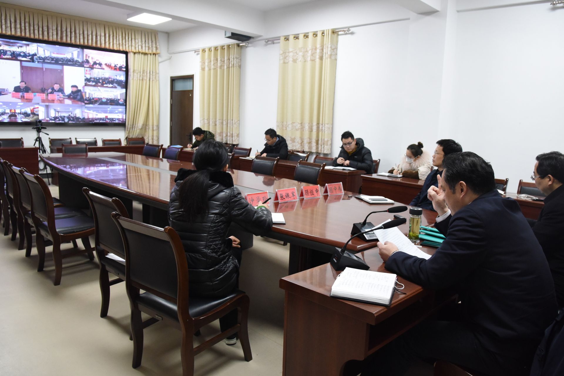 1月27日上午,颍东区召开新型冠状病毒感染的肺炎疫情防控工作视频会议,市政协副主席、区委书记顾恒中主持会议并讲话,区委副书记、区长张银军安排部署社区防控工作,区领导顾中伟、沙学珍参加会议,各乡镇街道和村居全体干部在分会场收听收看会议。