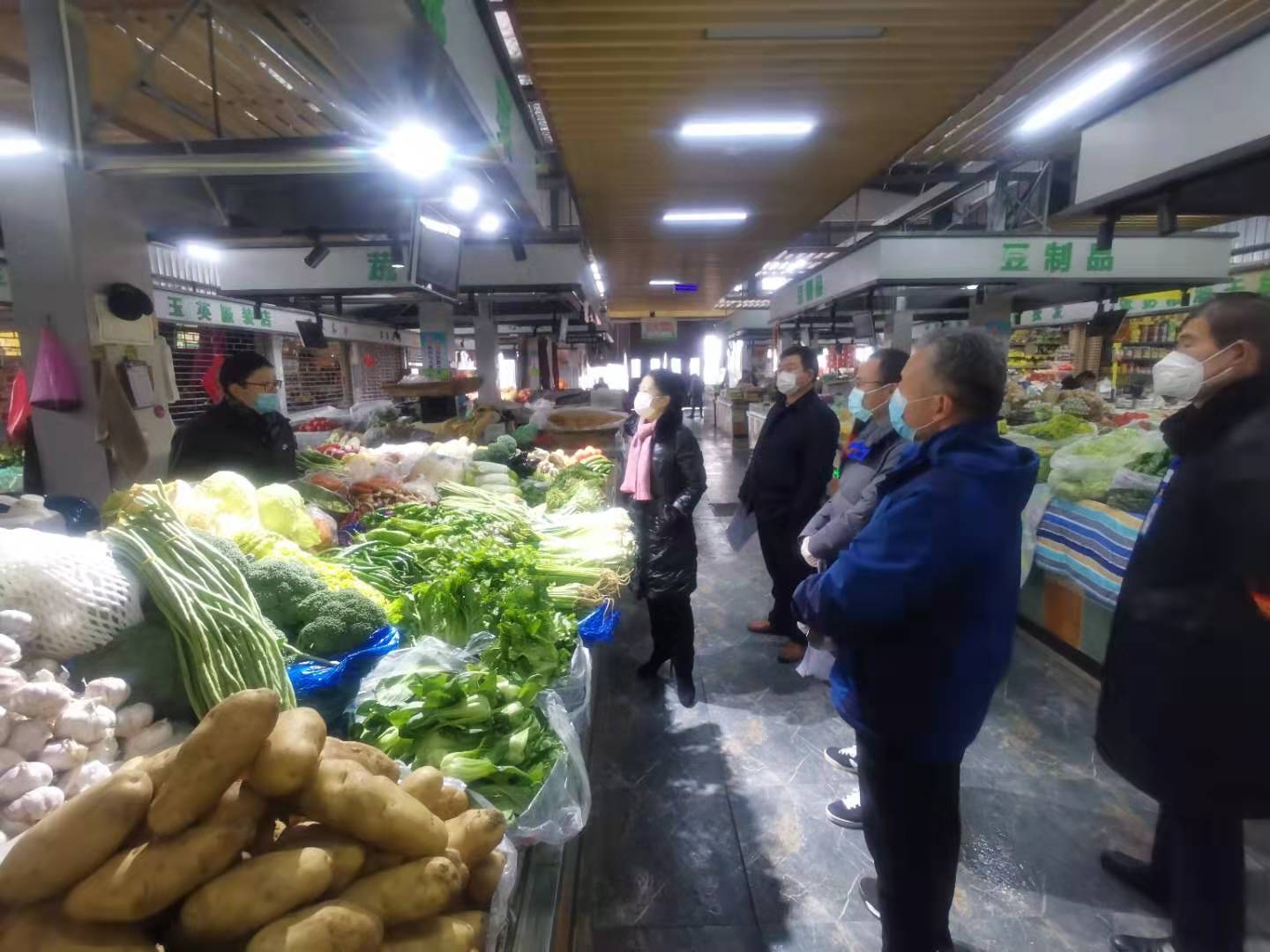 严防范,布卡设点。疫情发生以来,每个商超、农贸市场都是疫情防范卡点,严格按照卫生防疫要求,关闭活禽区市场,每天消杀3次以上;对经营人员每天进行体温测量,并做好记录,密切关注经营人员身体状况;及时清扫清运垃圾,确保市场环境整洁干净。同时加强入口处管理,严格落实省市9号令,配备体温检测仪,对进入顾客进行体温测量,全程佩戴口罩,对未佩戴口罩或体温大于等于37.3℃的顾客,一律不允许进入并立即报告。