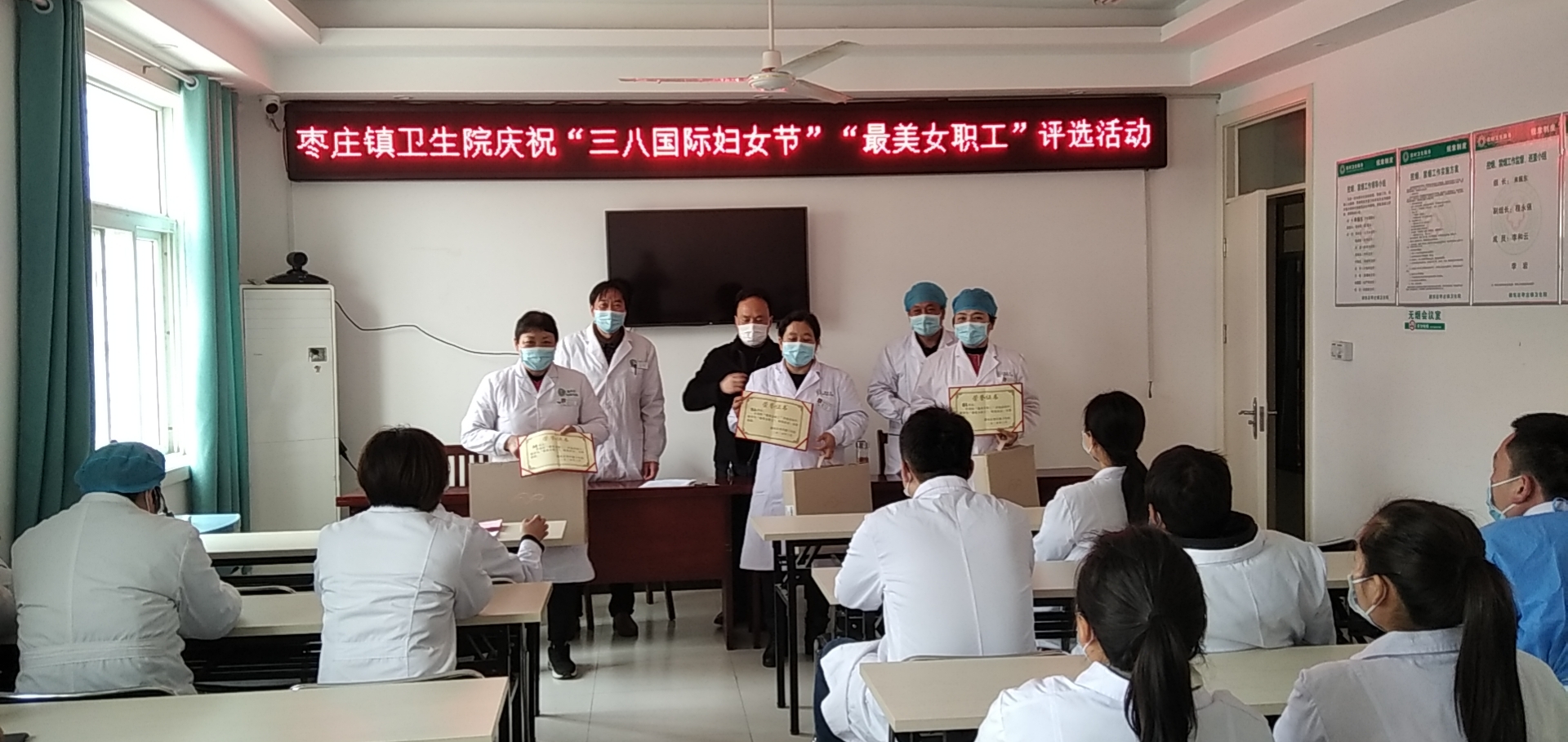 为庆祝“三·八国际劳动妇女节”,3月8日,枣庄镇卫生院举行了“最美女职工”颁奖活动。颁奖仪式由枣庄镇卫计办主任、卫生院院长来振东主持。