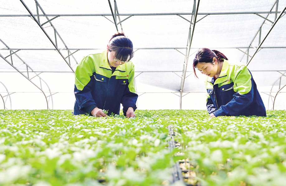位于颍东区插花镇的安徽瓦大现代农业科技有限公司育苗工厂大棚里,工人正在管理西红柿苗。该公司目前建有育苗大棚2座,占地3840平方米,年育西红柿、黄瓜、茄子等瓜菜苗1600多万株,在促进农业增效、带动农民增收方面,发挥着积极作用。 特约摄影 宿飞