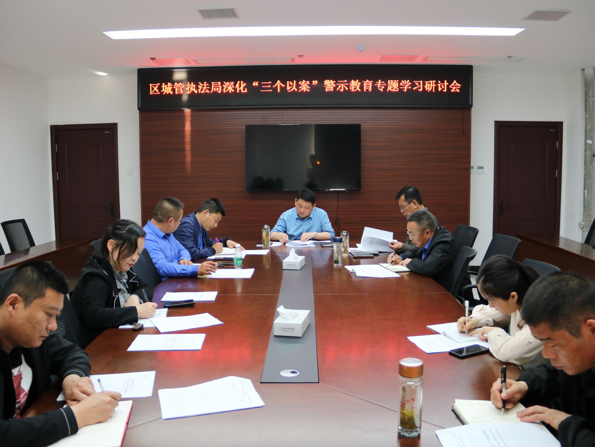 4月26日下午,区城管执法局召开深化“三个以案”警示教育专题学习研讨会,区委政法委副书记、城管执法局党组书记、局长储继彪主持会议并讲话,局班子成员、各二级机构负责人、局属各党支部书记参加会议。
