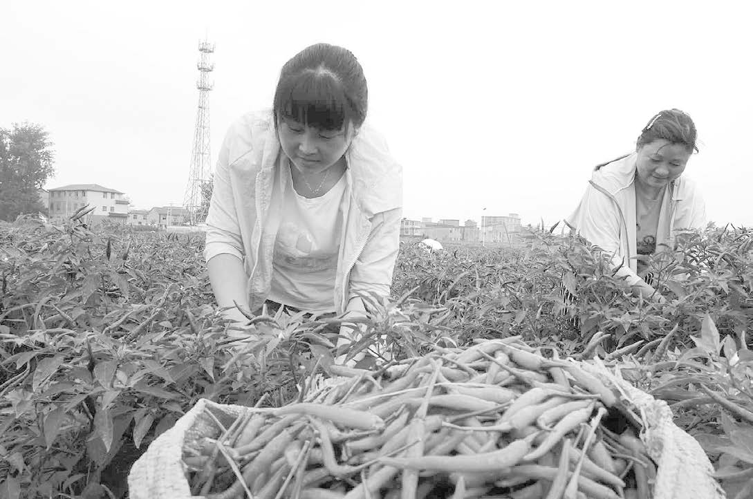 采访期间,记者与在辣椒基地务工的村民聊天。采摘辣椒的村民陈敏华说,“从栽苗到采摘,基地一直都有活干,工资一天50块钱,活不重,还能操持家务,挺满意的。”