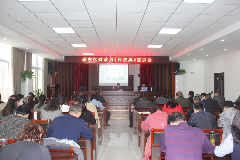 为提高财政干部职工知法守法意识,推动《民法典》的学习宣传,10月14日下午,颍东区财政局邀请安徽淮都律师事务所王友臣律师在会议室举办《民法典》宣讲会。