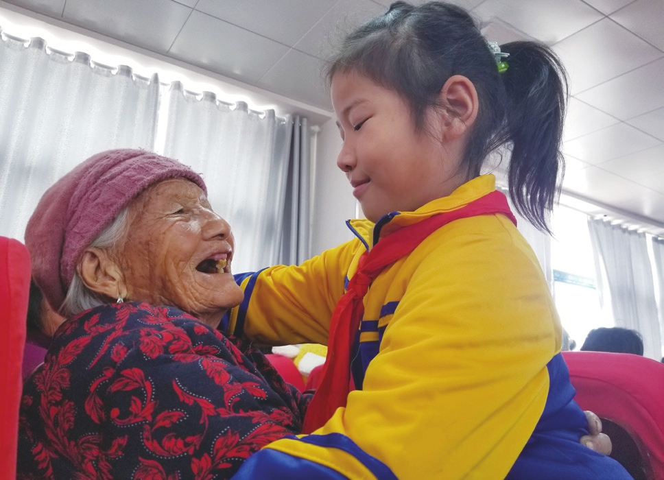 “爷爷奶奶,节日快乐。”近日,颍东区口孜镇钓台小学的孩子们和老人一起,过了一个有意义的重阳节。
