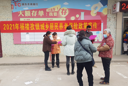 近日,杨楼孜镇开展城乡居民养老保险宣传活动,现场向过往群众发放资料100多份,就群众关心的参保问题详细解答,进一步提高了城乡居民养老保险政策的知晓率。