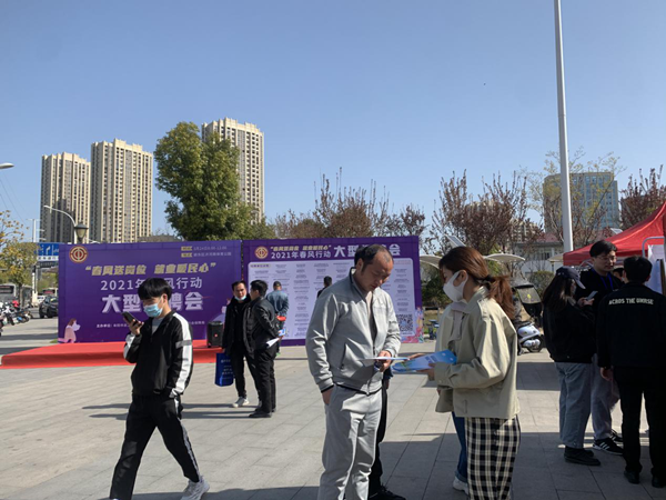 3月24日上午,向阳街道组织人员,参加由市总工会、区总工会、区人社局联合举办的“春风送岗位,就业暖民心”2021年春风行动大型招聘会。