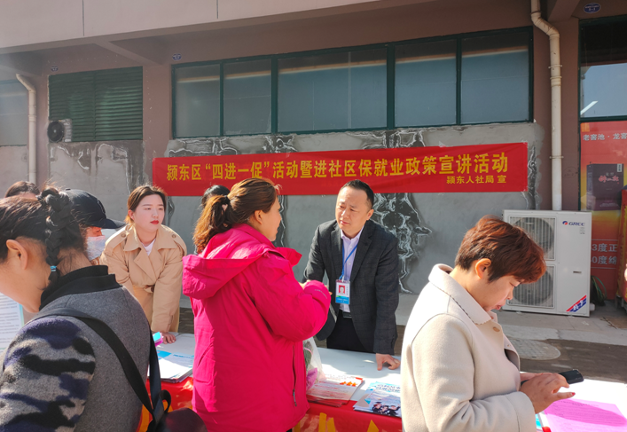 3月25日,颍东区人社局组织人员到河东街道办事处枣园社区开展“四进一促”活动暨保就业政策宣讲活动。