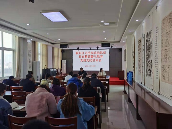 3月25日上午,颍东区司法局召开政法队伍教育整顿警示教育暨党规党纪培训会,全体干警参加。