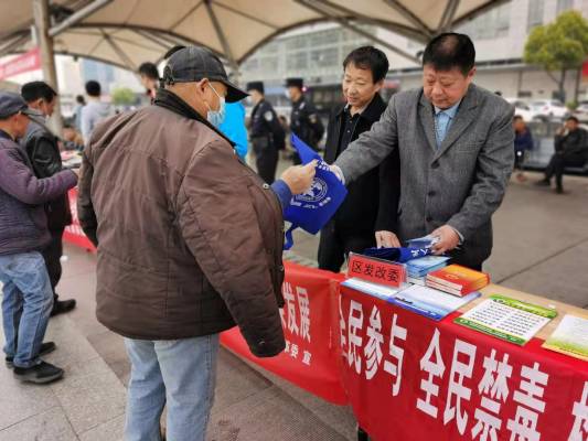 3月26日,颍东区发改委按照统一部署,在火车站广场开展“2021春风行动”平安建设、禁毒集中宣传日活动。