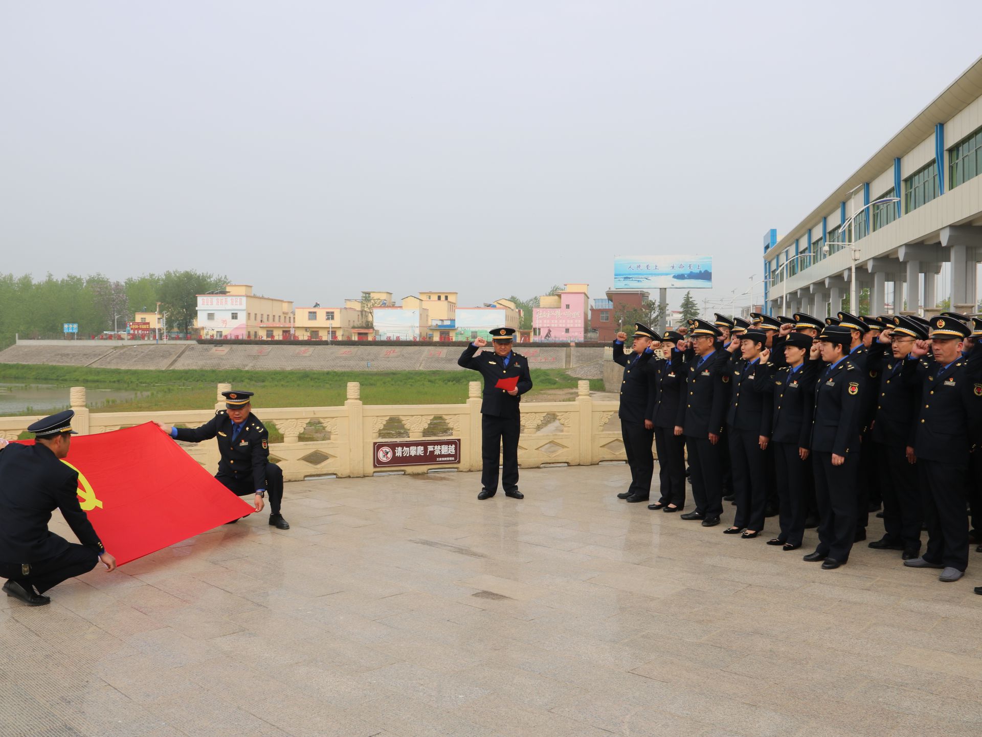 4月15日上午,颍东区城管执法局组织全体党员干部赴阜南县王家坝抗洪纪念馆开展红色教育活动。