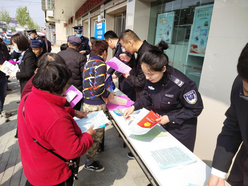 4月15日,插花镇精心组织,由插花派出所、法庭、司法所、社保所等多部门联合在银行门口、公园等人员密集的场所,开展全民国家安全教育日法治集中宣传活动。